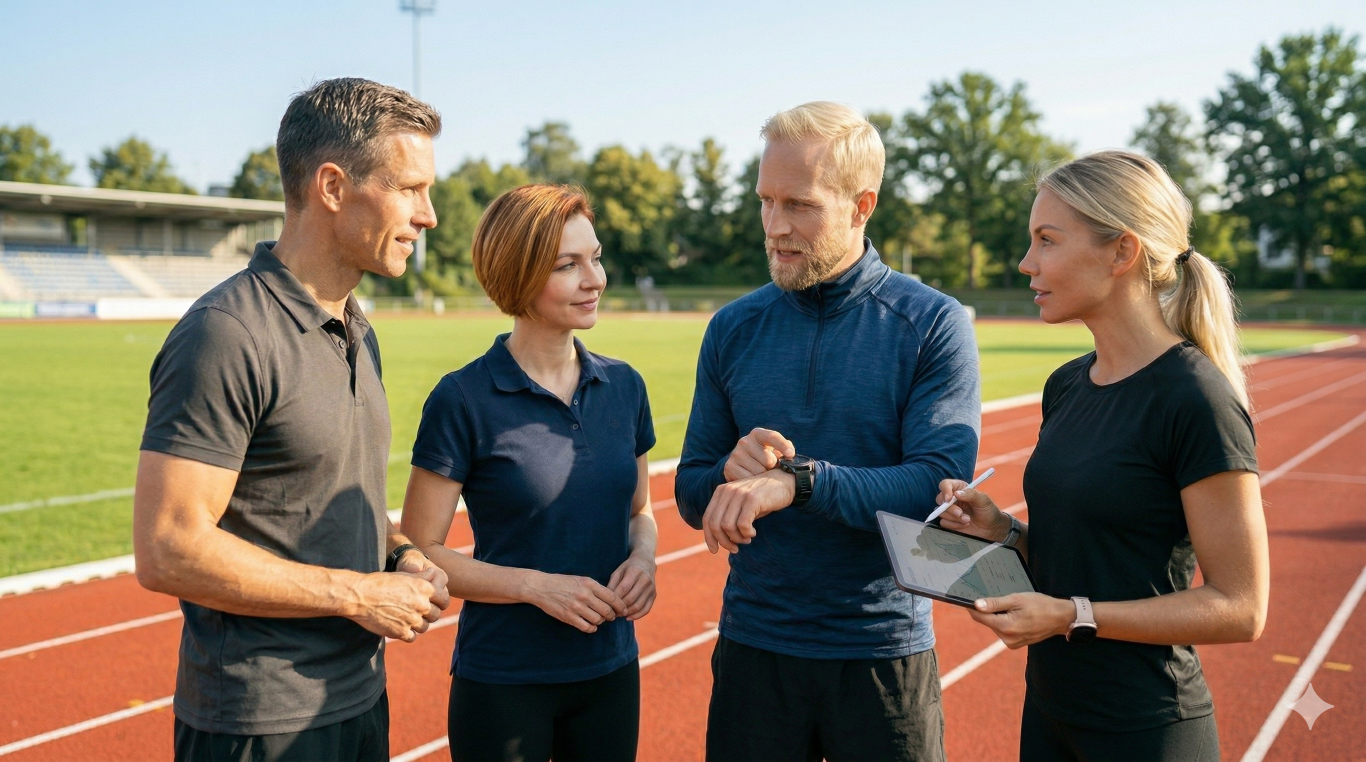 Seit Anfang 2026 trainiere ich mich nicht mehr allein. Ich habe ein Team aufgebaut — einen Head Coach, eine Reha-Spezialistin, einen Krafttrainer, eine Sporternährungsberaterin und drei Methodik-Berater. Jeder hat seinen Bereich, alle kennen sich gegenseitig, und gemeinsam decken sie mehr ab als jeder Trainer, den ich je gehabt habe.
