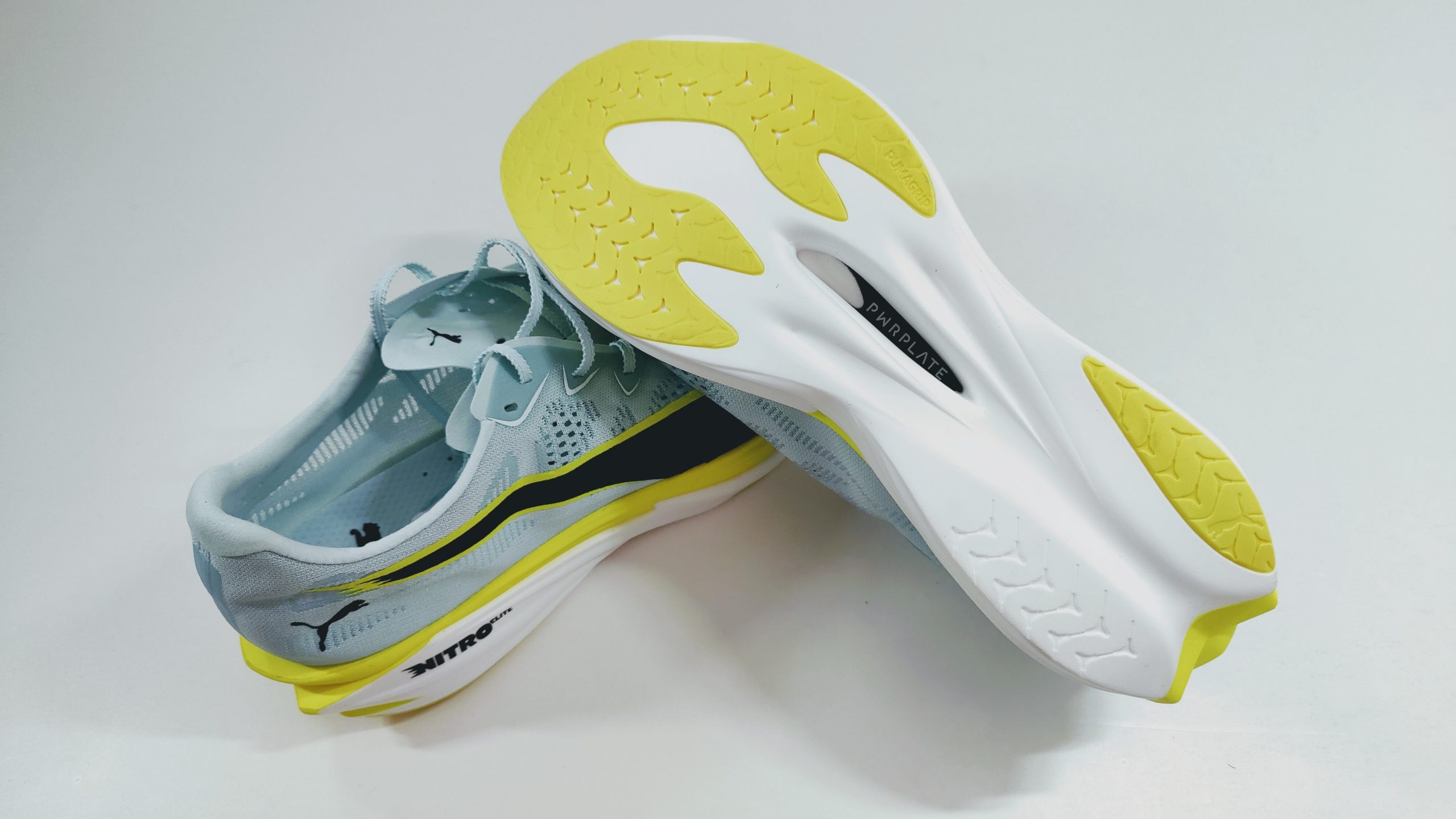 Die PWRPLATE-Carbonfaserplatte steckt wie gewohnt in der Mittelsohle, diesmal gebettet in den überarbeiteten NITROFOAM ELITE, der laut Puma eine Energierückgewinnung von 93 % erreichen soll – und 12 % leichter als beim Vorgänger ist.